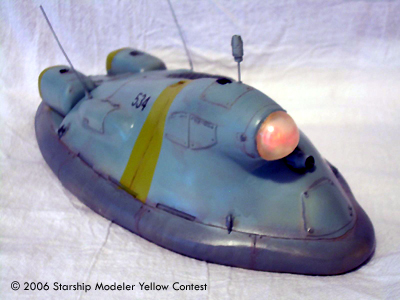 This is a 1/35 kit available at Wonderfest in Japan. I've modified it to include random colored blinking lights in the front lens and scratch built the center fan. It is a resin kit, so I was careful with cutting out the section for the lights. Resin can crack like an egg. I had to re-scribe most of the detail to make it stand out. Washing the kit was important, because resin release doesn't like paint. I did a base coat of light sea grey, then added dark sea grey for the skirt and sea blue for the rest. The ID stripes are yellow-green, which looked better than yellow in a test I did before painting. Added a rust and oil wash, to give it that Naval look. Topped it with Future, for a nice wet look.
