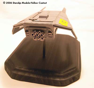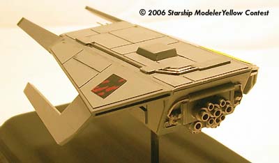 To qualify for the contest I decided early on that this particular ship would be from a fleet with a yellow insignia. I tried out several different ideas in ms paint over a rough sketch of the model, to see what would look good. I didn't want to go too far away from a rough combat ship feel and after deciding that the ship number was to be opposite the race icon I figured why not have the fleet color as a background for the ship number. I tried a few different ideas, again not wanting to go too far off the rough feel I wanted for the ship, and ended up with what you see here.