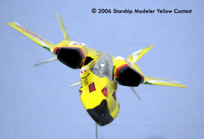 I turned the back part of the fuselage upsidedown , which brought the intakes way up. This took surprisingly little effort; only a little cutting was required on the top side and 2 short pieces of plastic glued in on the bottom to fill in the overlap, then puttied and sanded to shape.