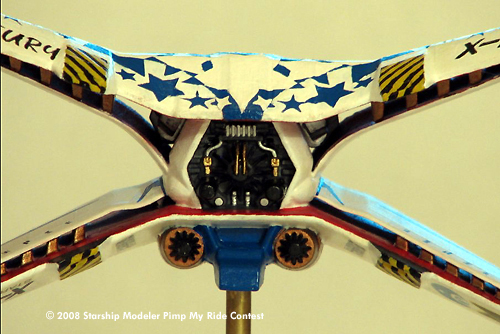 Knowing that I wanted it to be something different I started thinking of a aerobatic livery version (think Blue Angles..). While researching this and other Starfury work I came across the Pimp My Ride competition and got inspired.