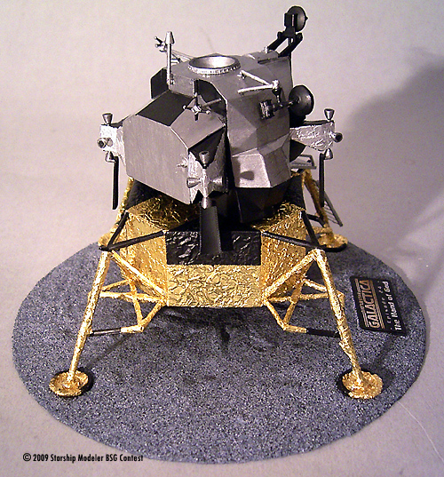 I built it mostly right out of Box, the only thing I altered is the use of the crumpled golden foil around the descent stage and the landing legs, as well as silver foil around the maneuvering thrusters (which was not part of the kit - I took it from chocolate wrapping). It was time consuming to wrap it around the latticework, but the result is worth every minute! It was later partially overpainted with black to simulate the “rubber”-protection surface in some specific areas of the lander.