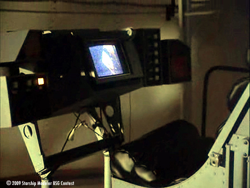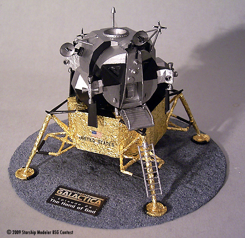 When the BSG contest was started I thought “which model could I build that, probably, no one else will do?”. I zapped through the classic episodes, searching for something outside the main subjects, and indeed I found an interesting one: The very last scene, even the very last screenframe in the very last episode of the old series (#24, “The Hand of God”) shows the lunar lander “Eagle” on a viewscreen of an old astronomical room on top of the Galactica!