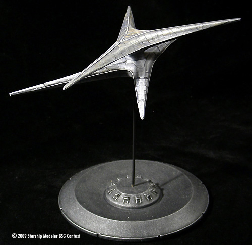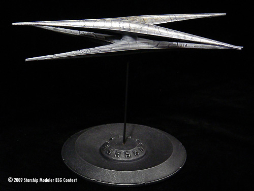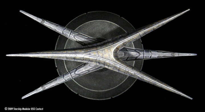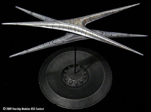 This is a repaint of a Replicas Unlimited’s Cylon Basestar I built a few years ago. It is a first run kit I bought through Federation Models. Of course, it represents the re-imagined Cylon Basestar from the Sci-Fi Channel series where onboard their new Basestar the new Cylons listen to piano music, exercise democracy, and the data stream really is a trickling stream. Personally I love the design and how it points to the original Basestar without copying it.