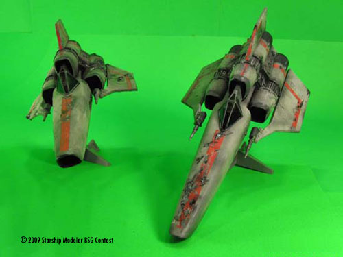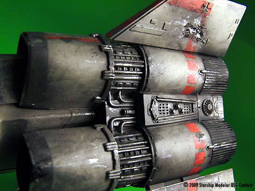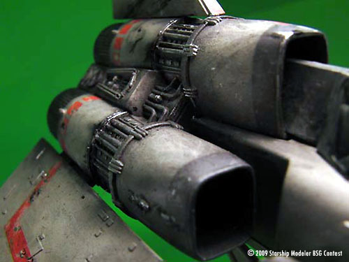 As for construction, I started on Viper 1 one night, with Viper 2 following the next night. Before what would have been final assembly, I stuck a set of three magnets into each model, one for each engine. These magnets hold the nose and forward engine vents onto the back half of the engines. This way, if I deceide to add lights later, I have full access to the body. See this: 4 minute YouTube video for more details
