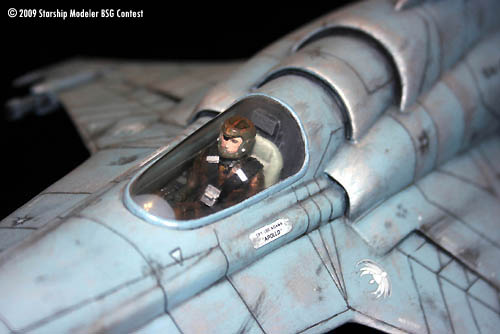 colors and weathering. The engines were sprayed a copper color and black. The cockpit was painted per screencaps and the pilot with a mixture of copper and green for flight suit