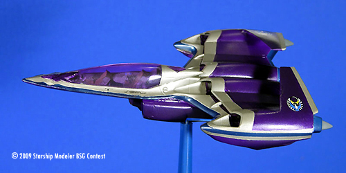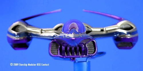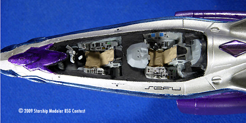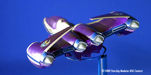 The characters of Battlestar Galactica went through a lot (understatement), and l read that stuff blows up and people die in the last episodes of the current series. So I kit-bashed this jet for Starbuck and wrote as good an ending as I think she could have. This kitbash is based on an AOI OGRE AN-21 race car by Aoshima. The original design looks like a jet with racing tires. My aim was to change the single-seat 1/24th scale racer into a two-seat 1/72nd scale jet.