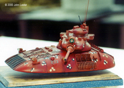 This is the hovertank from John Larson Productions, which I found via Seargeant at Arms Models. It's a big sucker, weighing in at something like five pounds (due to the soild resin hull). Assembly and clean up were simple, which gave me energy to convert or modify parts.