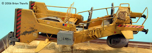 Image: Strips of styrene bulk out the side frames Image: Completed 'beam' ^ Basic structure Image: Basic body, front view Image: Rear view, completed shell Image: Engine basics Image: Light guards formed from brass ^ Ready for paint Image: Seat master and resin copy. The bottom tab aids casting. Image: Soldered rails Image: Side view, before painting Image: Underneath, before painting ^ A yellow of indeterminate FS number Image: Completed model, top view Image: Above and left Image: Left side Image: Front/left ^ Left/rear view |