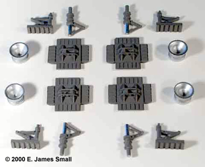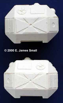 The landing gear shoulder pods (later to be the most troublesome parts of the model) were trimmed, test fitted and glued in place, carefully watching to see that everything was maintained in "true". A fair amount of strategic trimming was necessary. If I were to do the model again, I would replace the far-to-brittle tabs that attach the pods to the body with new ones made from wood or thick styrene sheet. This could be done by drilling out cavities in the pods to accept the new parts and then glueing in less-brittle replacements. The other alternative is to convince the manufacturer to use better quality resin, which is not likely to happen! The oleo struts were glued to the feet and then these were fitted into holes I had drilled into the shoulder pods. The tiny cage-like supports were then glued in place as well as the attitude thrusters and engine bells on the bottom and rear of the model to complete the assembly. ![]() Conclusion Overall, I'm very happy with the results of the model. It looks like an Eagle for sure and the accuracy is far better than any other model of the craft I have yet seen at this scale. It photographs well and, as you can see from the pictures, looks quite realistic. The pattern making is absolutely first-rate, but the manufacturing quality of the kit does not do it any justice. Despite the kit's problems, I still recommend it if you have the money to spend and are an accomplished builder. Hits: Very nicely mastered, fantastic detailing, well proportioned, a more accurate replacement for the ERTL kit at a more expensive but still reasonable price. Misses: Abominable resin quality, annoying mold misalignment problems, very fragile due to weight combined with overly brittle parts. If you dropped the finished model from a quarter of an inch above the table you'd have a lot of repair work to do! Addendum I'm working on the second WARP Eagle kit for another customer now (this one will have the turned engine bells!) and I have learned a few things which I'd like to share. These are, I think, pretty important tips to make the model much stronger and easier to build.... First, do not use superglue to fasten the model together as stated in the destructions. Use epoxy glue or similar adhesive. Use superglue only for glueing walls, roof and floor of the passenger pod together. Glue everything else with epoxy! Immediately before epoxying parts together, sand the mating surfaces with coarse sandpaper and then score with the tip of your exacto knife in a close crosshatched pattern. This helps to give the glue something to hang on to. This is especially necessary when glueing the "greasy" metal parts! Do this just before glueing the parts together to minimize oxidation of the metal, which happens almost instantly and creates an invisible barrier to prevent the glue from sticking well. Replace the weak locator tabs on the shoulder pods with metal rods. Do this by drilling holes into the shoulder pods and also into the center frame box to accept the rods. Using a high tool speed, drill slowly and carefully to avoid fracturing the brittle resin. Best to use a drill press if you have one. Be very accurate in drilling to keep all the pods equal and square. Test-fit this assembly well and then attach them permanently with epoxy after the model is painted. If you use the useless locator tabs provided with the kit, the pods will not support the weight of the finished model and will break. Before gluing on the nosecone, drill holes in the back of the module and the body to accept a metal rod to connect the two. Glue with epoxy. If you do all this, the model will be MUCH stronger than if you build it according to the destructions. |