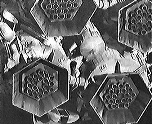 "Here are some stills from the 2001 DVD showing the four nukes as Soviet, US, French, German and Chinese in that order. If you look closely at the first satellite in the film you see a US air-force insignia (you can just make the insignia out in on the tower). . The second is German; you can clearly see the German flag here. So, that is a Maltese cross you see there. The third satellite is French as can be seen from the French air force insignia here. The last satellite is Chinese with a red star and bar. The image here just shows this under the "cannons" at the back of the nuke. Thus the nuke that was cut from the film is Soviet, probably because the US nuke matched up better to the flying bone at the end of the Dawn of Man sequence." |