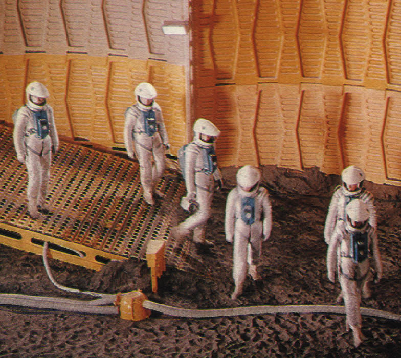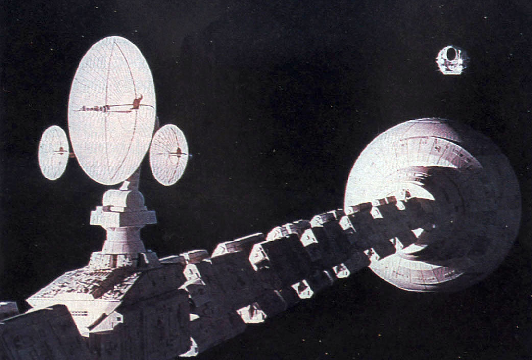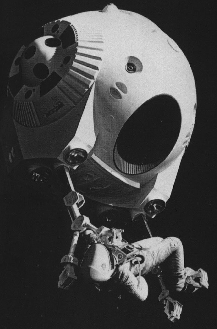 | "2001: A Space Odyssey" By Rob Caswell, with the generous help of Phil Sterett. Kubrick's vision for the year 2001 holds up reasonably well, considering its 1960's perspective. This is due, in no small part, to the dedication and passion that hardware designers Fred Ordway and Harry Lange brought to the film. These craft remain some of the most plausible created for sci-fi cinema. The craftsmanship of the models was also ground breaking. They were some of the first movie models to use small parts from plastic kits to detail and texture - a practice that's since become a standard. The study of 2001's studio models is just that: a study. Kubrick had a penchant for destroying his props after production. His goal was to make sure that things like spacecraft were not later reused in low budget sci-fi flicks, thus cheapening his original work. He even destroyed the plans used to create the vehicles and sets. While an artistically admirable goal, it left us with the barest scattering of 2001 movie artifacts. In the absence of real models, careful research is required in order to piece together the details of these landmark movie spacecraft. The most obvious and readily available source for reference is the film, itself. However there are some other images out there - out takes, promo shots, etc. Our goal with this page is to try to assemble as many of those resources as possible. We've gone back to periodicals released in the 60's, pictures from original program books, and more. We also share our information and observations on the various craft in the sections below. Probably the best printed source of 2001 reference is the book Filming the Future, by Piers Bizony. We have avoided including pictures that are redundant to that volume, unless we had a significantly superior reproduction of an image. Do you have any other unique 2001 photos or information? If so and you're willing to have them posted here, please contact Rob. Our goal is to make this the Web's most complete 2001 resource for sci-fi modelers. To do that we could use your help. |
