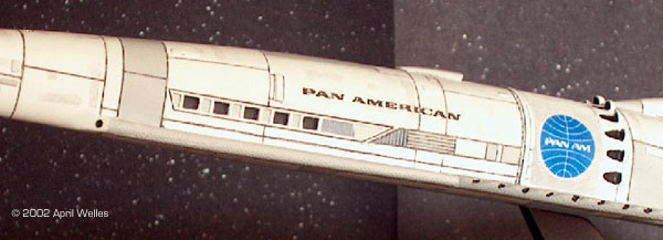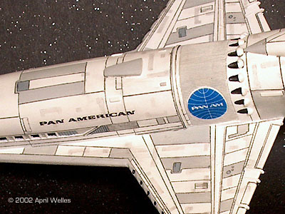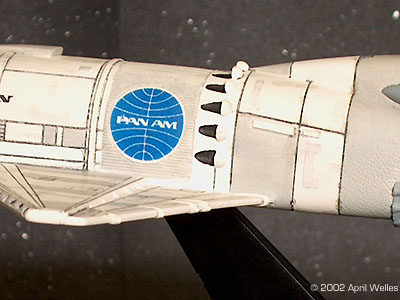 Painting Painting this model seems relatively straight-forward. It's white, Right? According to what I've seen on the video it looks that way. Actually, it is mostly white with a number of random panels that are actually a light shade of gray. I started off by spraying it with white primer. Once that had dried, I used 1600 grit to lightly sand the slight lumps one can get from primer. I then sprayed the model with Testors Flat White. Once the first coat was dry I sanded it with 3200 grit paper so as to have a smoother finish, and then sprayed the second coat. I did the process one more time and waited for it to dry. Once the base of white was dry, I painted random panels Testors Light Gray, except for the landing gear section which I painted Testors Light Gull Gray. After the paint dried completely, I went back and, using a fine-tipped pencil, drew in all of the panel lines and sections. Once finished, I took the sticky part of a Post-It note, cut out a few rectangular shapes and used it as a stencil. Taking a piece of lighter gray chalk, and using my metal file cleaning brush, I scraped off a pile of the chalk. Then, taking a new, dry Q-tip, I dipped into the chalk and proceeded to pat, and then gently rub the chalk into the shapes on the stencil (almost like coloring with crayons). Once the shapes had been filled, I moved it to another location and repeated the process until I had colored additional panels all over the plane. The final look is a number of hull panels in different shades and sizes. Decals These are pretty self explanatory. The decals themselves are okay, but not great. But they are pretty thin and will tear very easily. The colors were a bit faded in some of the letters of the name. The blue globe may be too dark, that I don't know (nor care. It looks good enough). After dipping them in water, I brushed on some Testors Decal Set on the model and then placed the decal onto it. I then used a Q-tip and gently dabbed up the excess as well as sealed up the edges. This is where I found out that the decals are very fragile. After letting it dry for a moment, I went back with Testors Decal Solvent and brushed that on to seal it and make the edges not as noticeable. Once everything was dry I sealed it with a coat of Testors Dulcoat. After I finished with the decals I glued into the aft of the model the antennae. For those, I used the "business end of a safety pin" as mentioned by Michael. Once finished I sealed it with gloss coat. |