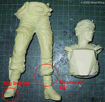 Accuracy There's good detail and looks accurate, Vasquez's face is a reasonable likeness. Although, I may take down her chin a bit…it looks a bit big. The one noticeable problem is that her left leg is a good ¼" longer than her right leg, even allowing for the slight bend of the right leg. In pic#2 you'll see that I did shorten the left leg by a good ¼". I cut the leg at the boot line and removed the ¼" from the pant leg. When I did this the kerosene smell was almost overwhelming! As I am typing this article I can smell the model on my desk, and it's not all that pleasant. The resin is very hard, btw, and has a hard, clear core! Incidentally, sharp-eyed movie watchers will have noticed that the young actress who portrayed Vasquez was the same one who played John Conner's adoptive mother in John Cameron's "Terminator 2". She was also the lower-class mother in his "Titanic" who lulled her children to sleep as the icy water rose around their bed, the little scene that brought every parent in the theater to tears!
