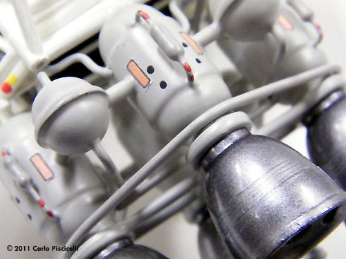 ^ Tedious work Image: Scratchbuilt inner bulkheads Image: Cages and bulkheads Image: Bulkheads in place ^ Looking better already ^ Fuel tank assembly Image: More tankage Image: Landing strut cut from a 747 part ^ Completed landing gear Image: The hole in the bottom of the pod Image: Covered ^ Landing Pod Image: Another look ^ Engine Bells Image: Engine bells, detailed Image: Bells mated to the fuel pods Image: Details Image: More Image: Nose area Image: Detailed ^ Bringing it all together Image: Side thrusters Image: Another look Image: Reamer Image: Opening up the pod ends Image: New door ^ Finished pod Image: Completed pod, right side Image: Top view ^ Completed model Image: Left/front view Image: Left/rear Image: Right/front |