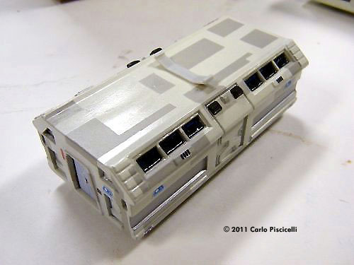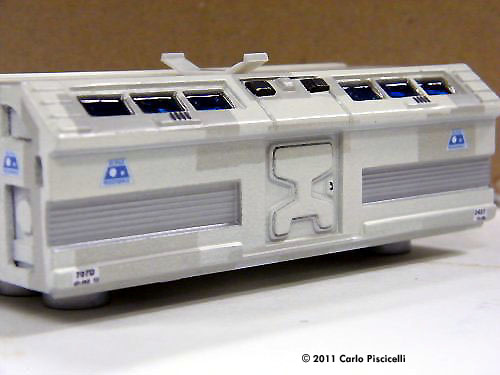 I began this project after I recently purchased a 1:72nd scale studio diecast metal replica of the Space 1999 Eagle Transporter from the UK. What inspired me most was the way this model was painted and the degree of weathering it had with gave it a very realistic finish. This diecast model also had interesting detail not found on plastic model kits of the same scale. As I had an AMT/Ertl model kit in 1:72 scale and I was inspired to try to replicate both the detail and finishing technique used. |