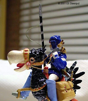 Image: Though all Japanese, the instructions are useable Image: Kai, partially assembled, with modified gas mask Image: Kai's head Image: Nausicaä, in pieces Image: Her body is now complete Image: All the various subcomponents completed Image: Teito and the sword Image: Reins being added Image: Close-up of stirrups Image: Teito and sword added Image: All the details fitted Image: Front view, completed model Image: Rear view, completed model Image: Front, left side Image: Nausicaä's front Image: Nausicaä's back |