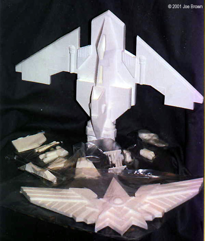 Gemini Productions, Inc. had a booth at Wonderfest 2000, and after looking at this kit all that weekend, I bought it on Sunday shortly before I headed home. This was quite a bit for me to spend on a single model kit, but I had tried scratchbuilding this one and just wasn't getting anywhere. Also, their display model was simply gorgeous! And in 1/48 scale, it's BIG! WHAT YOU GET The kit consists of 28 resin pieces; one is a clear acrylic support rod, and the other 27 are very high quality white resin. The entire kit came in a study cardboard carrying case, and other than the fuselage, all parts were individually sealed into their own plastic pouches. There were virtually no resin pits or bubbles (that means fewer than 10!) and while there was minor mold-seam line clean-up to do, it was very minor. I was able to wash clean all the parts of any mold release and finish the seam removal all in one evening (about 1 hour actual working time). I found the resin to be of medium hardness. It's quite firm and stable, but it can be carved or sanded with minimum effort. The two biggest pieces are the main body (or fuselage) of the fighter itself, and the beautiful "Fleet" base. The base looks like the wings that the Navy uniforms sport in the movie and is very nice. It's a goodly sized piece at 7 & 9/16 by 15 & 3/8 inches, and it is wide and weighty enough to support the assembled fighter. BUILDING IT I have never before had the pleasure of getting a kit which virtually falls together right out of the box. I was delighted! This fighter can easily be assembled in a single sitting. But, I would suggest taking one's time with it to simply enjoy building a quality kit. The assembly instructions/painting guide are on a double-sided, color-printed page, and are very clear and explicit for parts placement. Sounds minimal? It is, but it's almost overkill--even with 28 parts this kit is a breeze to assemble! There were three spots where I used MagicSculp putty to hide join seams, and each of those was because I had been a little too heavy handed with sandpaper. When I purchased the kit, parts were included for two main engine intakes; unfortunately, they were both for the port-side engine! And you can't just reverse them. I know, because that's the first thing I tried! So I e-mailed the company and explained my problem. They promised a free replacement, and when I received it, I discovered that they had tossed in a few freebies for my trouble! PAINTING I used the photos that D. Dymerski provided in Amazing Figure Modeler #17, and also on the Starship Modeler Hardware Reference page, in the Starship Troopers sections. There are also some great black and white photos in issue #27 of SciFi & Fantasy Modeler. The hardest part of painting this model is that fact that it is so big! I used ModelMaster Acrylic paints, mainly airbrushing Light Gull Grey and darkened Neutral Gray for contrasting panels. I sprayed Flat White into the centers of some panels to attempt a soft color contrast. It's a very subtle effect, but I like it. The anti-glare panel in front of the cockpit, two areas of the forward wing, and the edges of the engine intakes were all sprayed with Tamiya Red to give the fighter a bit of color. The cockpit itself was inked with a Uniball Microfine pen Since this was done over the grey, there was a neat off-black look to it when I was finished. The base was painted gold (nice and simple so as not distract from the fighter). For actual mounting, I used two diameters of brass tube that fit inside one another--a short wider piece in the base, with the slightly narrower tube going up as the support, and another of the wider piece glued into the fighter. I drilled a hole to accommodate setting the second wider piece into the fighter at its center of gravity; and placed the fighter at an upward angle, tilted to one side. This has become a habit with me, since it allows showing most ship models at a more dynamic angle. CONCLUSION I will (eventually) remove the solid resin cockpit and build a clear one; I already purchased two resin ACES II ejection seats for the flight crew in 1/48 scale. I'll have to do some creative fitting to shoehorn them into the molded-in cockpit tubs. But, since those are already there, that should make adding a visible cockpit even easier. This is one of those resin kits that I am happy to advise anyone who has the cash to buy it to go ahead and buy--it's a real winner! |