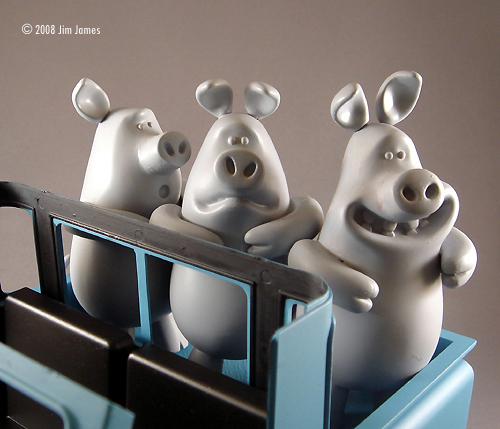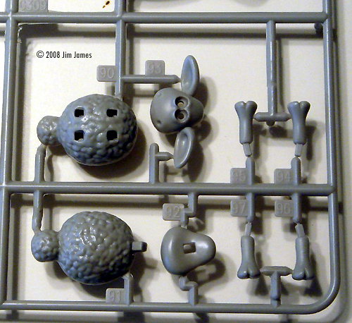 First off, let me answer two questions you are probably asking yourself. Question 1: Who the heck is Shaun the Sheep? Shaun made an appearance in Wallace and Gromit's third short, “A Close Shave.” Aardman then created a series of kid's shows based around Shaun. More details here and YouTube has a few selected episodes. Question 2: Why on earth did I want this kit? I've been an Airfix fan for a very long time and have really enjoyed their Wallace and Gromit kits. Frankly, this was something different that caught my interest and who could resist a model kit that includes three naughty pigs. What You Get You get a 1/12th scale Landrover and figures of Shaun, Timmy (a smaller sheep), Bitzer (the sheepdog) and the three Naughty Pigs. The kit assembles so that Shaun is driving and the pigs are standing in the back. The Landrover has big rubber tires, metal axles, steerable front wheels and the option for left or right hand drive (huh?). It's a pretty simple kit with nice detail (the side and turn lights have separate bulbs and clear light casing. Warning to modifiers: this Landrover is not a scale replica of any particular Landrover. You also get a bunch of paints - none of which work for the pigs, Bitzer or the Landrover (although Airfix does provide a mix menu for the colors of the pigs and Bitzer). I plan on matching and/or mixing Testors enamels to match colors. There are a few pictures of the actual Landrover but all seem to have slightly different shades of blue. Challenges All parts have mold seams which need to be sanded off. Airfix plastic is a little strange - slightly rubbery and very slick. This makes the seams harder to remove and the parts harder to hold while you're doing it. Other than that, the parts fit is very good with minimal sanding around the joints. And watch out for those sprue attachment points. Even with a sprue cutter, I got very untidy cuts that still left marks in the plastic after sanding. Plus, the sprue attachments weren't always sensibly placed (on the sides of the sheep eyeballs, for example). The Sheep Both the Shaun and Timmy parts breakdown make painting very easy. Even the eyes are separate. Shaun comes with his very bushy tail but since he's seated in the Landrover, the tail gets in the way and has to be left off. This is a little strange because the leg positions mean you can't do much else with the figure so the tail could never be used. Both Shaun and Timmy have a sheep wool texture surface with a flat area where the top and bottom body halves join. This looks really bad. |