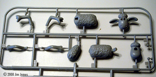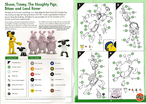Image: Shaun on the sprue Image: On the sprue ^ Bitzer, Shaun and Timmy completed Image: Landrover, partially finished Image: Landrover paint guide |