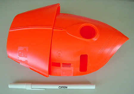 What You Get Polar Lights' latest sci-fi spaceship is not a re-pop of the Aurora molds. Rather, the company has back-engineered the model and made new tooling as they did for other Aurora kits. This is evident in the very clean, nicely pressed parts. I found no sinkholes, flash or other molding flaws on my kit at all; even the inevitable mold seamlines are barely visible. The kit is comprised of around forty parts, molded in orange (exterior), a vomitous green (interior) and clear (windows and base). (There is another issue of the kit in which all parts are either white or clear - you can see which you're getting through a small window in the bottom of the box). There is not a lot of detail present - but then, there wasn't a lot on the original. The interior parts - bulkheads, flooring, chairs and instrument clusters - are crisp enough. So are the grilles on the exterior. As on the Aurora kit, the company logo and striping are raised from the surface to make them "easier" to paint. Most modelers these days would no doubt prefer decals, but this is a faithful replica of a 30 year old kit so we get raised markings.Also included are three surprisingly nice figures. Their size is what leads me to conclude the ship is around 1/72 scale. No landing gear is provided, just like in the Aurora offering. Instead, you get a clear stand and a small sticker to place on it. Assembly and Finish The fit of the parts, at least from what I can tell by dryfitting pieces, is surprisingly good. One area of concern: the alignment pins on the exterior pieces don't fit in the corresponding holes. Those will either need to be enlarged, or the pins shaved off. The upper hull can be left unglued to you can show off the interior. If you decide to glue it in place, you'll want to build the interior anyway as it provides the rigidity the model will need to survive being handled. |