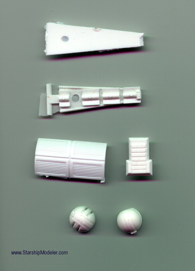 It took ten months to produce this kit, and the time invested appears well worth it. What You Get The kit consists of 53 resin parts, assembly/paint guide, and decals. The resin parts, which consist of the fighter and a four-part base, are very well cast in a fairly soft white resin. There was almost no flash on my sample, no pits or bubbles, and I really had to look for mold seams. In fact, I really had to look hard to find any casting flaws at all, the work is that good. There are a few spots where a panel line is interrupted by a mold seam, but in general, the production quality of the pieces is on par with what's coming out of Japan and Eastern Europe these days. You heard that right - except for the choice of resin and the subject matter, this could have been done by CMK. The parts are very well engineered as well. Test fitting of major components shows that, once a few mold seams are lightly sanded, I won't need to use much putty - if any. The kit features four detailed "Death Blossom" bays, two for each wing, making it the only Gunstar kit I know of to include these. The picture at left does not do it justice - these parts are simply exquisite in the amount and quality of detail. The modelr has the option of covering them up with the bay doors ... but it would be a shame to hide what's behind there. The base is a nice touch - and includes a "hook" so you don't have to permamnently glue the model to the base (allowing one to zoom it around the room while making space-battle noises, not that any of us would do THAT). One possible drawback is the lack of an interior. I don't miss it - few aircraft kits I build smaller than 1/72 scale have much in the way interiors either, and heaven knows I wouldn't be able to paint anything that small anyway. Instructions consist of four photocopied pages. The first is a complete listing of parts. The next three are detailed assembly steps with paint call outs. A marking guide is provided as well, to assist in placement of decals. Waterslide decals for the one fighter seen in the movie are given. Because these were printed on a laser printer, they are very thin and may well be very fragile. I would recommend overcoating the sheet with something like MicroScale's Liquid Decal Film to strengthen them. Sure It's Pretty, But Is It Accurate? As far as I can tell, yes. I've compared the parts and the decals to what I can find on-line, and by freeze-framing the movie, and I'm satisfied it's as close to being the "real" ship's doppelganger as is possible at this scale. I'm not 100% positive about the interior of the Death Blossom apparatus bays, but the detail looks so good I wouldn't mind if it was off a bit. |