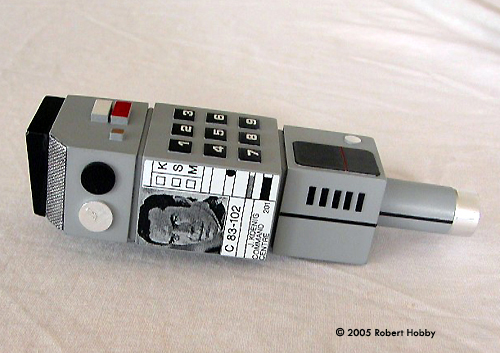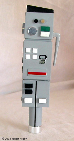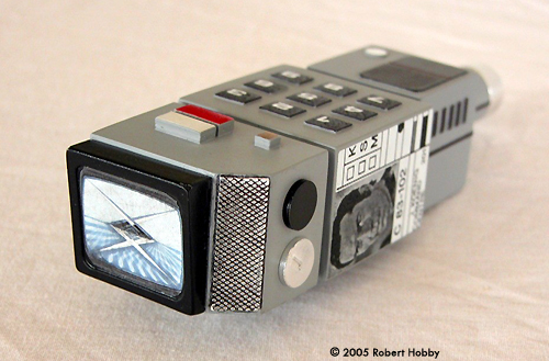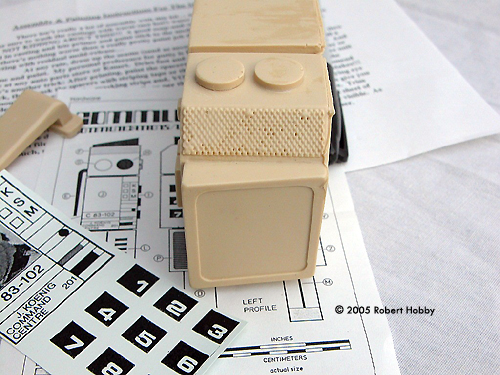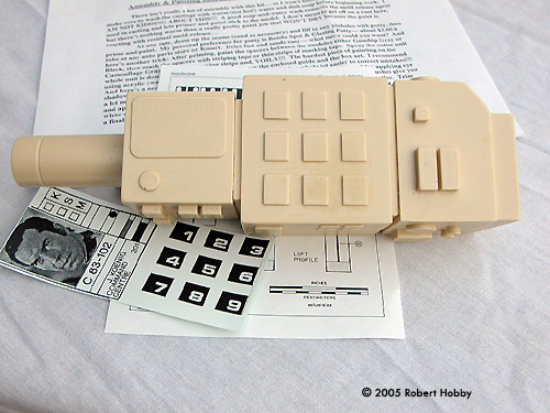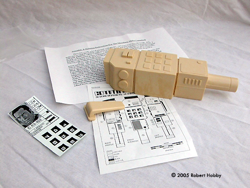 Upon inspection right out of the box, the unit is solid resin and appears pretty well casted and detailed. There are quite a few pinholes in the resin and on the review piece for this build. There were several slightly larger than pinhole size too. Ok, no bad problem. Simple enough fixes even for the novice and I'll explain how I fixed those in a bit. Assembly & Painting Following the resin preparation instructions, I washed both parts several times with warm water and dish soap and allowed the pieces to thoroughly dry. I then started the pinhole patching. They were pretty much all over kit and I simply spread a little BONDO brand glazing and spot putty over the holes and lightly sanded the excess. Several of the holes took another application of putty to fill, but were finally filled using the same technique. After I was satisfied with the finished surface of the kit, I primed the entire thing with rattle can sandable primer and allowed that to thoroughly dry also. After a bit of finish prep of the primer, I was ready to paint. To prep the primer and smooth everything down, I used a 3-M Scotchbrite scouring pad. These work VERY well as a finish sanding tool on both primer and paint. For the finish coat of paint, I used a light gray, again from a rattle can, and metallic silver for the belt clip. I deviated from the instruction suggestions here and found a few reference pictures from the web and went with a light gray that most closely matched what I saw in the pictures. For the rest of this build, I used the same reference for the general markings and detail painting to try and match an original prop as closely as I could. Once the base coat paint had dried, I attached the belt clip to the unit. Since they were both resin, I drilled and pinned the clip to the unit using a couple of cut finish nails for the pins, which really made the attachment of this resin belt clip very strong. Details The kit was now ready to paint details. I painted the details with TAMIYA paints that most closely matched what was on the reference. As a note here, the reference I found and the suggestions included in the kit are a very close to a match, so when I say I deviated, it wasn't much. |