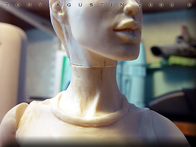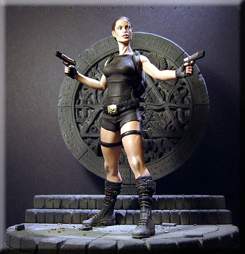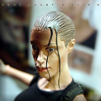 A couple of years ago I found this figure kit of Angelina Jolie at a local Chicago Model Convention. It is a Jimmy Flintstone figure called 'Raider Girl'. I thought it was a remarkable sculpt and the likeness was very good. One problem I had with the figure was the pose was too stiff and unnatural. This figure was going to be my first venture into the world of re-posing. I would also get introduced to a material called BalsaFoam. This won Best Female Figure at Kitbuilders 2003 and also won Silver at Wonderfest 2003. |