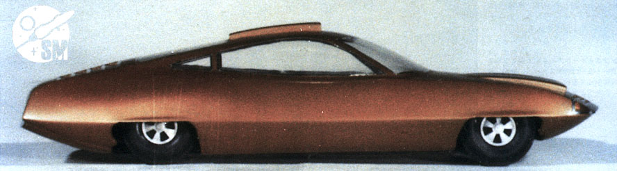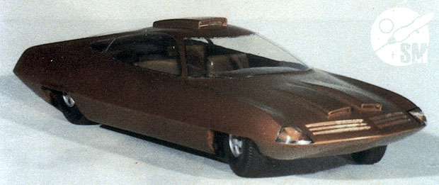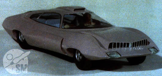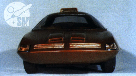 IMAGES: | When UFO was in production, the concept of turbine driven autos were becoming all the rage. That reality was short circuited by the onset of the Gas Crisis, in the mid-seventies, but it was firmly embraced in UFO's interpretation of 1980. Two different styles of turbine cars were used throughout the show. One is strongly associated as "Commander Straker's car". These vehicles existed as full sized props, as well as models. Most of the images presented here are just those of the models. | |