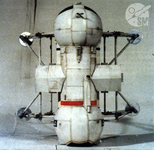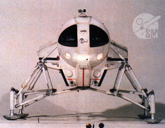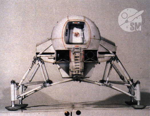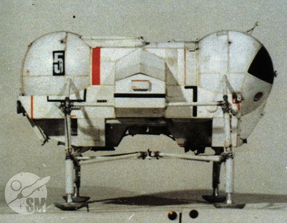 IMAGES: | With a fully active Moonbase, SHADO needed a vehicle to ferry supplies and personnel from Earth. The Lunar Module filled that role. The LM was fitted within a large VTOL aircraft which would leave from an airbase, climb to great altitude, then release the LM to continue the climb to orbit. The intake on the nose implies that some kind of ramjet or scramjet was involved. Once the LM reached the Moon, it would land, tail first, on a pad at the center of SHADO's Moonbase. By all appearances, the LM was not an elegant shuttle. Its passengers probably got a pretty rough-and-tumble ride. This ship is so ugly, even an A-10 Warthog would have a hard time loving it. It stands out for this reason, alone. Its similarity to a large-mouthed fish is immediately striking to anyone who sees the craft. | |