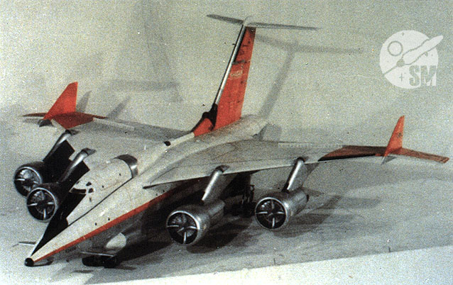 IMAGES: | SHADO has (presumably) a small fleet of hypersonic aircraft for transporting important people and things. The styling of this vehicle is a cool cross-breed of the Concorde and the XB-70. This vehicle is used in domestic and transcontinental operations. | |
