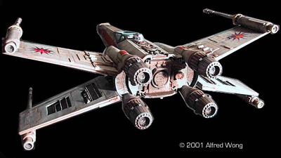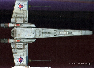 By Alfred Wong - images & text © 2001 Those who are familiar with the vast and richly detailed Star Wars universe outside the movies will know that the X-Wing starfighter, the ship most identified with the saga, is not exactly a state-of-art starfighter. It was already approaching obsolesence at the Battle of Endor, and most other fighters in the Star Wars universe can out-perform it with ease. Despite this, the X-Wing remains popular with its pilot and remains the dominant fighter of the New Republic.