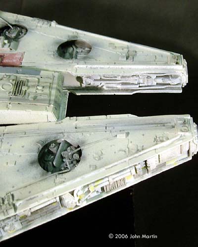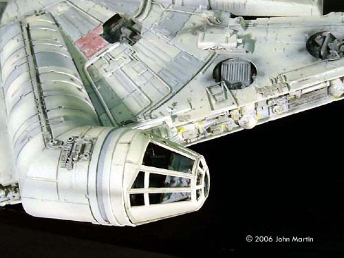 Sidewalls As mentioned, I originally intended to use the kit sidewalls with additional bits from the parts box. But, as more reference material became available, I decided to scratchbuild them, using the smaller ESB Falcon as a guide. I found fairly decent reference photos of the details along the mandibles and rear quadrants. |