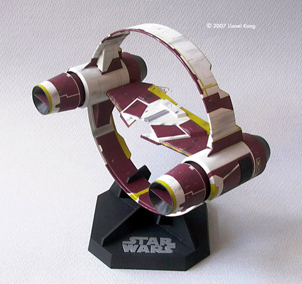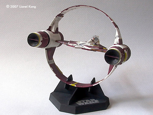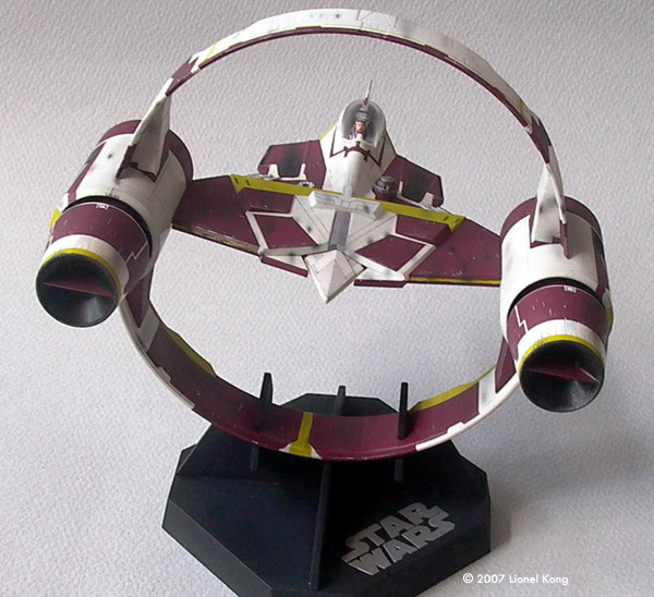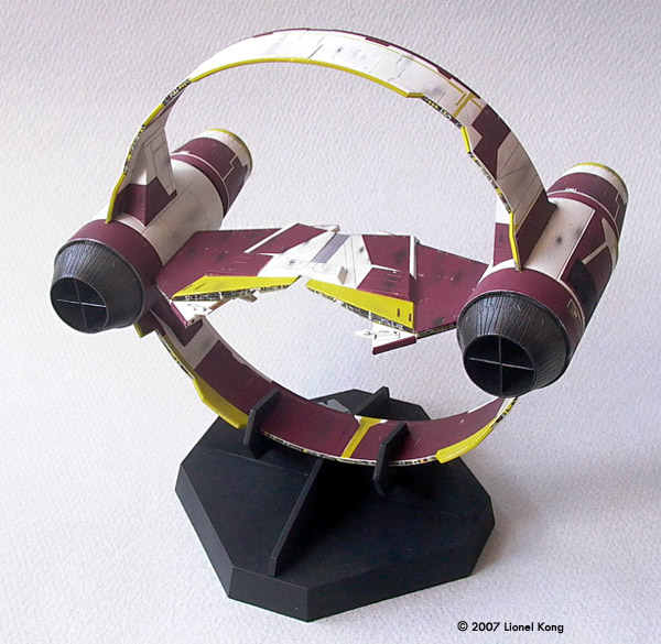 ^ Getting started Image: The Box ^ Ring assemblies Image: Ring Joint ^ Completed Hyperdrive Ring Image: From behind Image: Painted ship ^ Painted and decalled starfighter Image: Left/front, on the stand Image: Left/rear view Image: Underneath Image: Combination, front view Image: Close-up Image: Left/rear Image: Underneath |