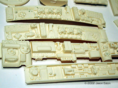 So there you have it folks - The following images were provided by Jason Eaton. they show what comes in the 2002 re-issued "everything" set from Falcon Kits. Image: Photo-etched grilles Image: Cockpit console Image: "Guts-on-the-outside" side detail pieces Image: More guts on the outside |