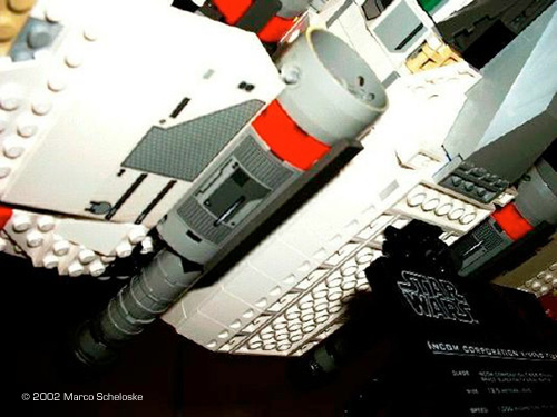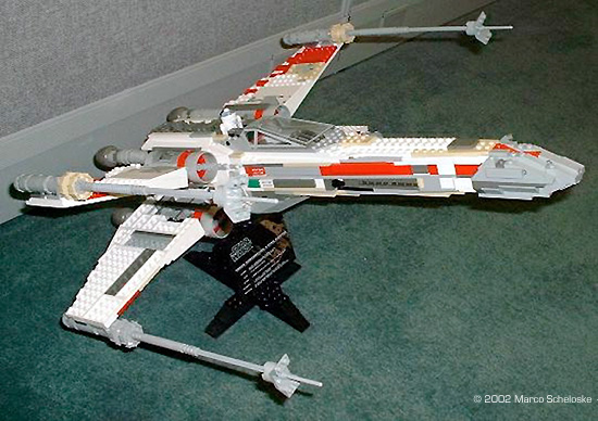 The model comes out really huge when completely built, approximately 50 cm (19 5/8") long. It is built in subassemblies which must be put together at the end. The problem is that the bricks of the subassemblies are mixed in the bags, so you must open them all. I suggest you find a flat area in your house or apartment without much traffic, spread all the 1304 pieces there CAREFULLY (there are a lot very small ones which are always trying to disappear...) and search, search, search. It could help to sort them by color. Assembly is straight forward except one step, but this is definitely not made for children (LEGO itself recommended it from 14 years up). I needed two full days building it, and I'm 33 years old and have been building models for more than 25 years now! The step that is a little problem is the subassembly of the main fuselage which contains the gearbox for the movable wings. If you follow the instruction to move the mounting-points in the correct position so that the wings would face correctly when attached they WILL be wrong! I recommend to build the wings first and then test-fit them to the gear before you close the main fuselage because it is difficult to re-open it once it is finished. The colors of the bricks are well chosen, there are hull-platings given in two different tones, but at the end the model is a bit clean (and who wants to weather a LEGO-kit?).Take it as an INCOM brand-new one, ready for being shiped to the next starfighter-store, and it's ok. The canopy and the wings can be opened and closed. Details are very good for a LEGO-model (some cockpit-parts has pre-printed details), the laser-guns has the correct different appearance (two "flat"-ones, two with the coils), but it is a little bit out of proportion - especially the engines are too small in diameter. The wings are looking good while in combat-position, but they are too thick when closed. But the overall appearance is very good, and it is a lot of fun building it. Oh, and when it should fall down you can just collect the pieces and put them together again, and no damage will be visible. Do that with a styrene or resin one! Is it worth the price (recommended by LEGO: 209,- Euro)? Hm, regarding to the size and the number of pieces it fits into the usual LEGO-price-range, but for myself that would be much to much. Although you have to pay less usually, the average range (120,- to 150,- Euro) is still very high in my eyes. See, it is and remains a LEGO-toy-like model and not an ultimate resin-kit. Sure, it is a good one to take a little rest from the "advanced modeler syndrom", and it is an impressive display item, but I think only a real X-Wing-collector should get it for such an amount of money. I got mine for only 60,- Euro at a toy liquidation, and for that price I didn`t have to think twice. So my recommendation: When you`re searching for the best LEGO X-wing available and you MUST have one, go get it. When you`re searching a toy for your child, get one of the smaller LEGO-X-wings available (these are better for the "wooosh"-thing too, if you know what I mean?). When you can get your hands on a cheap one, get it - if not for yourself, it will make a good and unsual gift for a model-building friend! Many thanks to Marco's wife Dagmar for providing the review sample. Manufacturers and retailers, interested in getting your wares reviewed and publicized on a site averaging 2000+ readers a day? Contact us! |