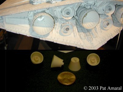 Odyssey Slipways' Secondary Engines Kit is most accurately used on the Avenger although they could be made to portray Devastator's secondary engines after some modification. In my opinion, the parts in Ertl's kit have a more accurate basic shape for the Devastator but they do not have as much surface detail as the Odyssey Slipways kit. Perhaps Chris (owner of Odyssey Slipways) will decide to release a version of these parts specifically for the Devastator at a later date.