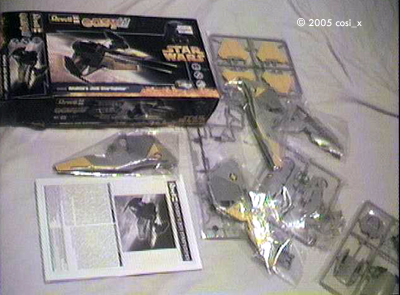 Conclusions All of you “true modelers” will need to fill the seams and repaint it, but all in all, a nice kit. It took me about two hours to assemble, but I was interrupted 27 times with requests for more juice, Elmo TV, and help with making Play-Dough snakes. You could probably get it assembled and ready to fly around the room while you do your best Darth Vader impersonation in about half an hour. I have no idea how long it would take to fill the seams and repaint it, but based on John’s limited time to work on models: six months on the workbench, with maybe eight hours of actual modeling time. I had been reading a few of the threads in the forum about building this kit and I wondered “why are they talking about decals and paint when it’s a pre-painted kit?” And while the paint scheme on the kit looks great, it really needs to be cleaned up and weathered. But the kit itself is a great kit to work with and you won’t be disappointed. Now that I’ve completed my Jedi training, it all becomes clear to me. And may the force be with you. (Sorry, but somebody had to say it.) Editor's Note: A word about costs - Revell Germany's license with LucasFilm does not allow them to sell these kits directly outside of Europe. International shipping being what it is, the cost of the kits can be double (or more) what folks in the EU will pay (for instance, Cosi reports he paid £8 (GBP) or about $14 USD/$17 CAN/$18.50 AUD) for his model). And that's on top of the markup a distributor will charge. Be smart - don't pay for more shipping than you have to! |