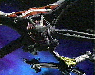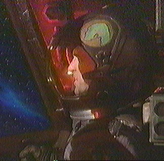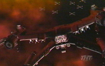 DEATH HEADThis ship is seen briefly in several fly-bys -- the most notable of which occurs as Zeta squadron approaches the Markab ship Cartee in "Confessions and Lamentations". Again, the details only became clear when Fleer released their 'Starfury Nose Art' cards with the Season 4 set. |