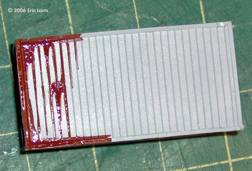 Image: Random rust-colored paint applied Image: Heat gun used to speed the curing time Image: Tamiya 'Rust' pigment added Image: Next comes some 'Soot' .... Image: ... then some 'Sand' .... Image: ... then some 'Snow'. Image: Just the pastels at this point.