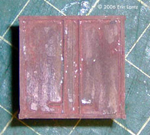 Image: Looking pretty distressed Image: Different colored paint 'chips' are the final touch Image: Side view Image: Top view Image: One battered box |