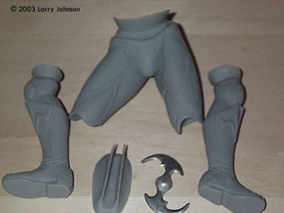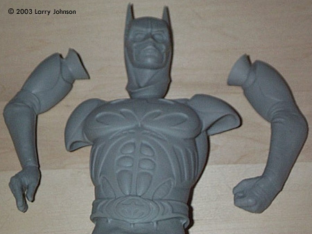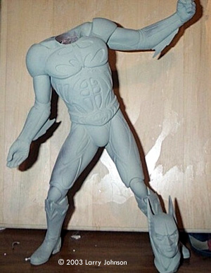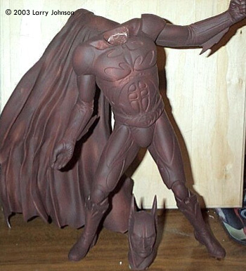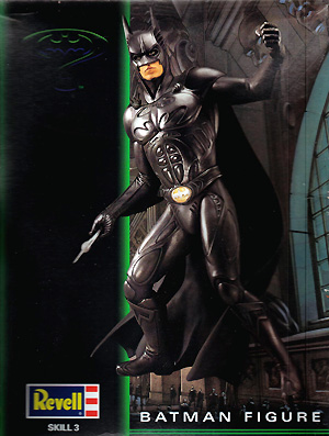 You've asked yourself, what about modeling figures? Is it really modeling? I have so many spaceships, antigrav tanks and mecha, do I want to build figures too? Well there must be something to figure building. Just take a look at the premier sci-fi model show in the U.S., Wondefest. Five categories for figures and one for everything else. Vinyl figure modeling can be a rewarding hobby. It appeals greatly to modelers who do not like assembly as much as painting, for the true skill lies in the latter. Assembly is often simple: few pieces, easy fit, a little trimming and super glue and your done. Painting will either render a true masterpiece or something akin to a G.I. Joe doll. This narrative will introduce the newcomer to the essential basics of how to build and finish a vinyl model. Some slightly advanced material will be touched upon but in general, just the basics. We will use the Revell 1/6th Batman from the movie Batman Forever as our primary subject in demonstrating building a vinyl model, although many other models and companies will make a guest appearance where helpful. With just a few ventures into vinyl kits, Revell has not done too badly. The Batman is well cast, nicely detailed, and falls together easily with just a little attention to the seams. |