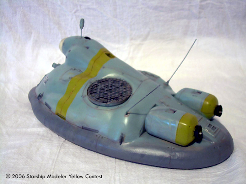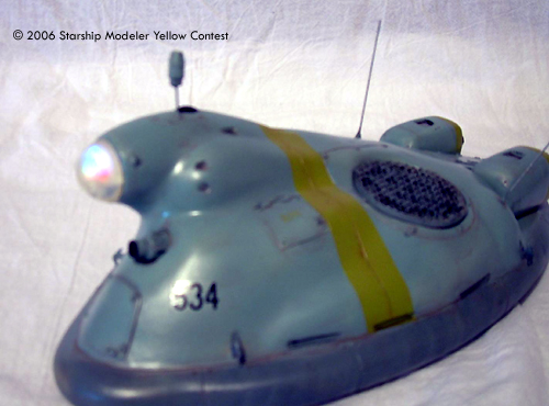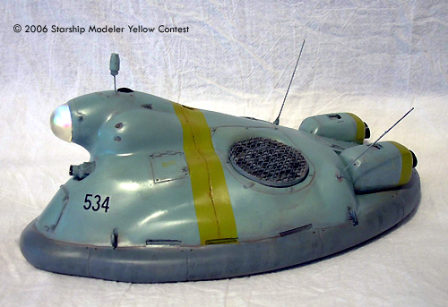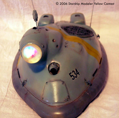 This is a 1/35 kit available at Wonderfest in Japan. I've modified it to include random colored blinking lights in the front lens and scratch built the center fan. It is a resin kit, so I was careful with cutting out the section for the lights. Resin can crack like an egg. I had to re-scribe most of the detail to make it stand out. Washing the kit was important, because resin release doesn't like paint. I did a base coat of light sea grey, then added dark sea grey for the skirt and sea blue for the rest. The ID stripes are yellow-green, which looked better than yellow in a test I did before painting. Added a rust and oil wash, to give it that Naval look. Topped it with Future, for a nice wet look.