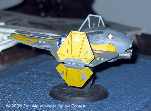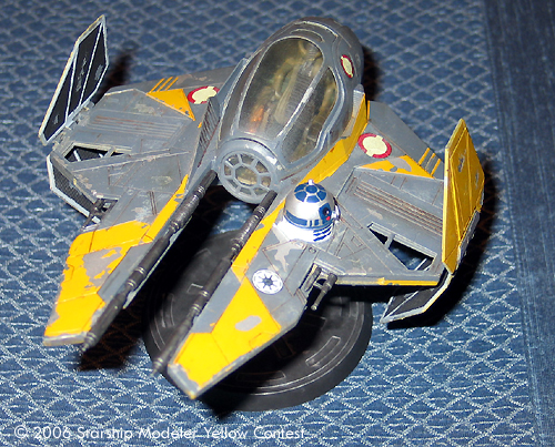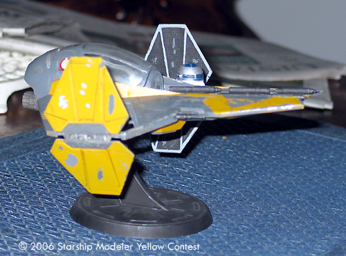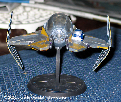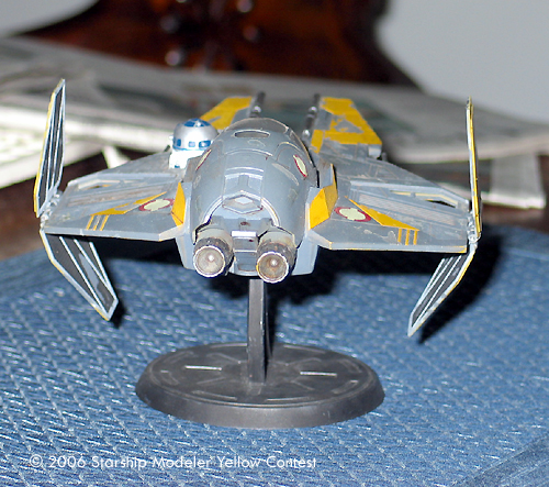 In the dark days of the Clone Wars the Jedi realized that their Delta starfighters were inadequate to handle the demands of starfighter. Thus a new starfighter was designed to handle the stress of prolonged engagement in space. This new starfighter, dubbed version 2.0, quickly became a symbol of the Galactic Republic as well the Jedi themselves. Each starfighter had a color which well represented its pilot. The one represented here is Anakin Skywalker's on or about the time the Clone Wars were ending and the one used in the daring rescue of Chancellor Palaptine.