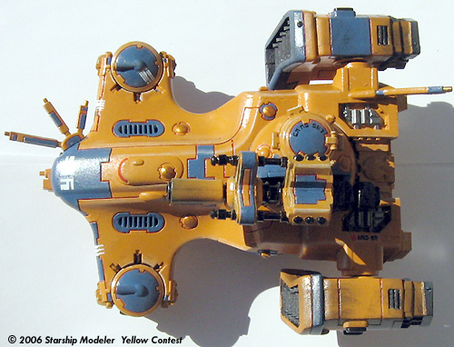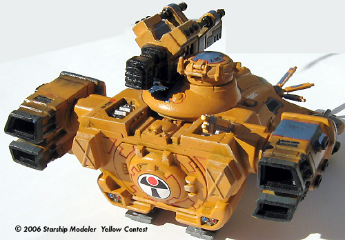 This is my Games Workshop Tau Hammerhead tank mounted with an Ion Cannon. I bought this Hammerhead used and primed. I didn’t need to strip the paint with brake fluid which was good news. I had to fill some holes and gaps with putty. Unfortunately, I discovered that pin which holds engines on the hull was broken. I bought rare earth disk neodymium magnets, fixed them in the hull and added two metallic plates on the engine. The result is like the original because I still can rotate them. Also, I added a magnet to the gun turret to switch heavy weapons.