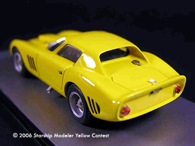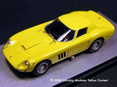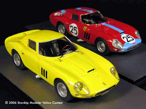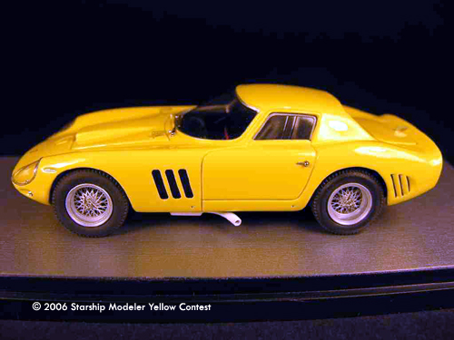 This car is the famous Ferrari 250 GTO 1964 ( road version) - similiar to the competition version that you can see ( the red car) near its well known "cousin" in one of the photos of the model.