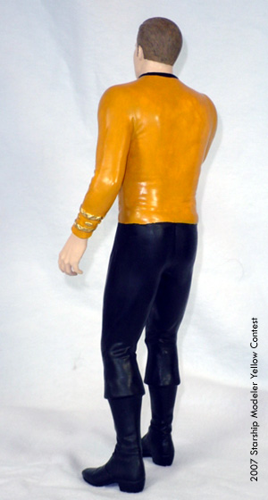 The yellow for his tunic is an artist's tube paint color from an art store. The pants and boots are Testors Model Master Black. The trim is gold. Hard to see in the photo is the ever-so-light shading of the hair over a dark brown base.