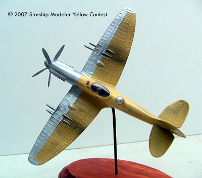 This model is a little Testors 1:72nd Spitfire that I've had forever. It was built in a hurry the first time, and for this contest was stripped, repainted and weathered, also in a hurry!