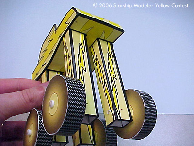 It comes complete with a massive suspension, all terrain tires, a wicked two-tone paint job and the most beautiful tail pipe design imaginable. If ever Webster needed a picture to go with the word "Jalopy" he should have used this. Look at those lines. I could never have thought of that. The auto industry needs to start employing 5-year-olds. Just sit 'em down at a scope and feed them sugar frosted flakes; they'll think it's a video arcade. Then fire the R&D section. We could have avoided the Plymouth K-car...