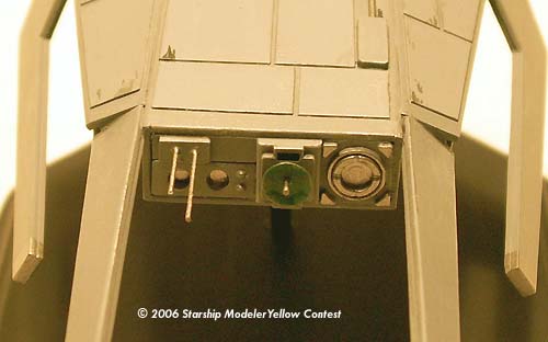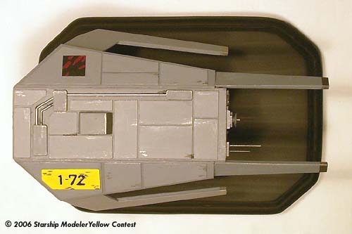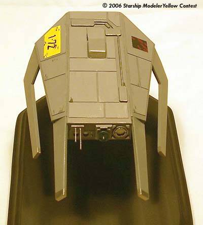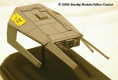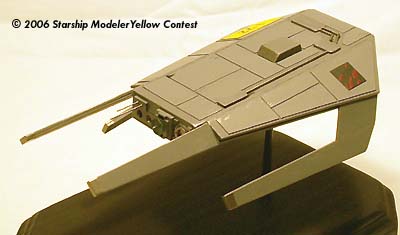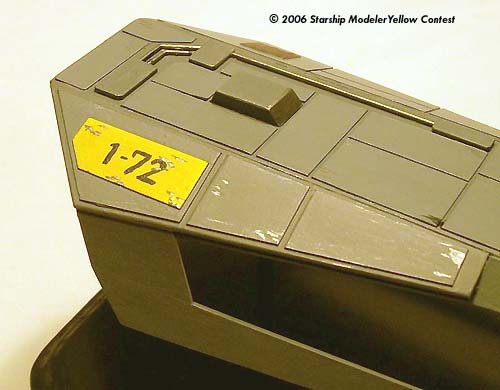 I decided to build a larger model for the Yellow contest, it's 14 cm long (5.5 inches) and 9 cm wide (3.5 inches). It's built out of 1mm styrene sheet with 0.25mm styrene sheet for the armor plating, styrene rods and some electrical wiring for piping. There isn't much on the model that's not scratch built, a few pieces of warhammer 40,000 bits, a piece from a 1:72 UH-1 Huey kit and some pearls.