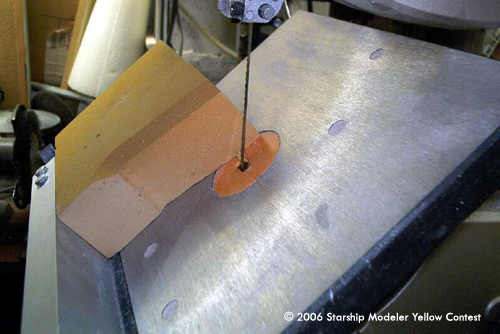 From a vendor on Ebay, I had obtained a small block of Urethane Dimensional Foam. It's much sturdier and firmer than Balsafoam or insulation styrofoam, and yet, it's not as dense a material as Renshape. It proved to be easy to form and work, and a bandsaw zips right through it!